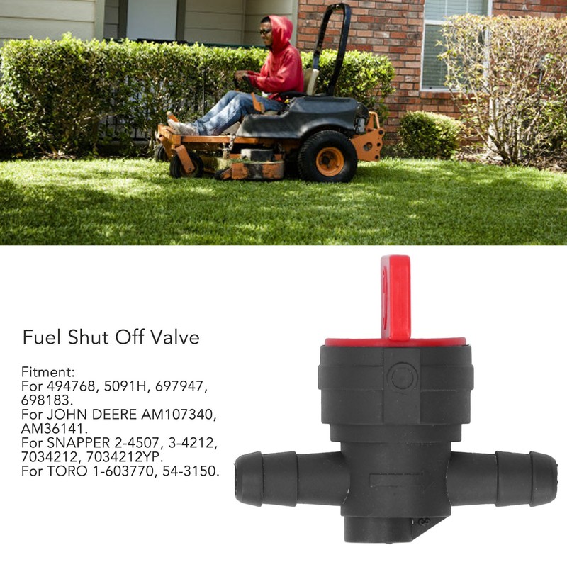1、Stabler Flowing: Having equipped with this fuel shut off valve, you will find it much easier to control and regulate the fuel flowing. 2、Perfect Fitting: For 494768, 5091H, 697947, 698183. For JOHN DEERE AM107340, AM36141. For SNAPPER 2-4507, 3-4212, 7034212, 7034212YP. For TORO 1-603770, 54-3150. 3、Standard Design: Mainly made from premium ABS material, the 1/4in fuel cut off valve conforms to the standard design, and very durable. 4、Including 10Pcs: There are 10pcs in line fuel switch in the set, and the largely quantity will meet your needs for regular replacement. 5、Easy to Install: Comes with a light weight and a compact size as well, the fuel shut off valve is very convenient to install in minutes.