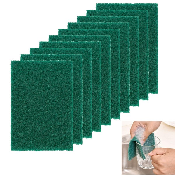 10Pcs Green Non-Scratch Reusable Heavy Duty Scour Pads Sponge Dish Scrubber S...