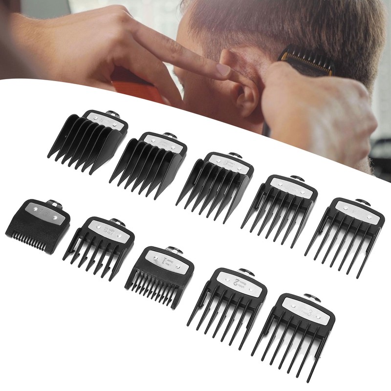 10pcs Haircut Limit Comb Positioning Comb Replacement Guide Comb Set for Hair Clipper Black