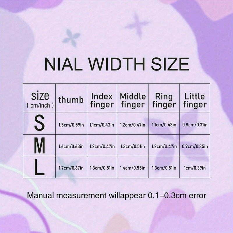 • 【Package Contents】10 Pcs flower Press on Nails +1 Nail File + 24 Pcs Jelly Glue Stickers+1 alcohol cotton+1 wooden stick.(Durability of jelly glue is not as good as liquid glue, but it makes fake nails reusable. Please use suitable glue according to different scenes)