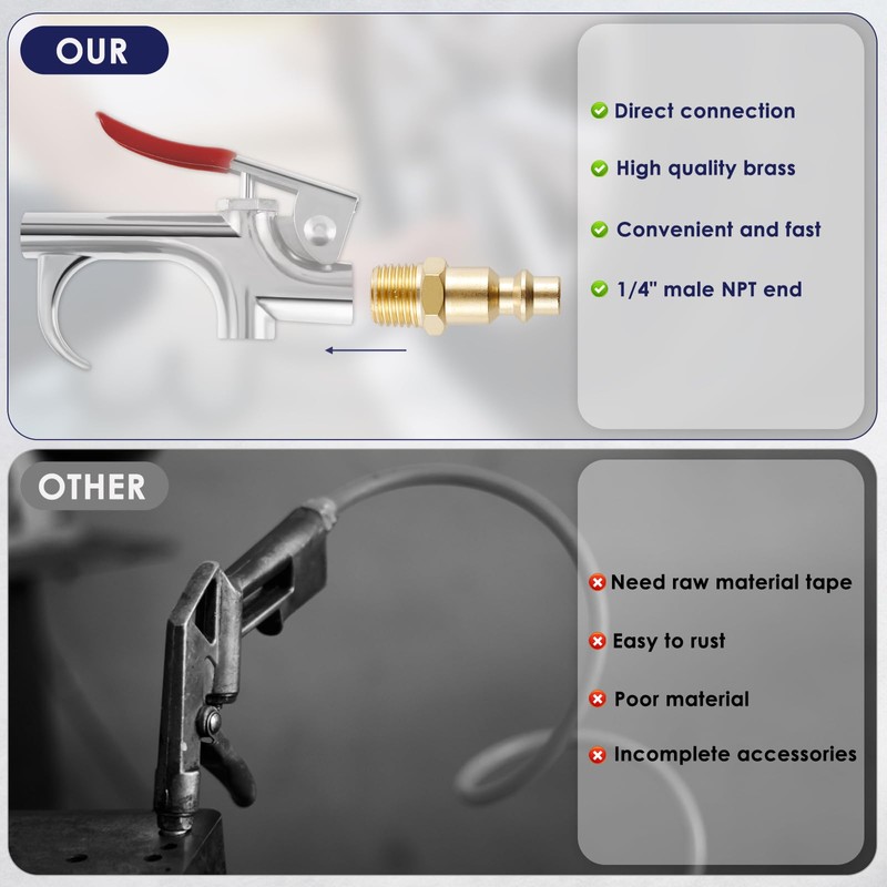 - [1/4-Inch NPT Design] The air hose quick plug kit adopts 1/4inch male NPT end for connecting air duct or air tools with 1/4inch internal threads.
