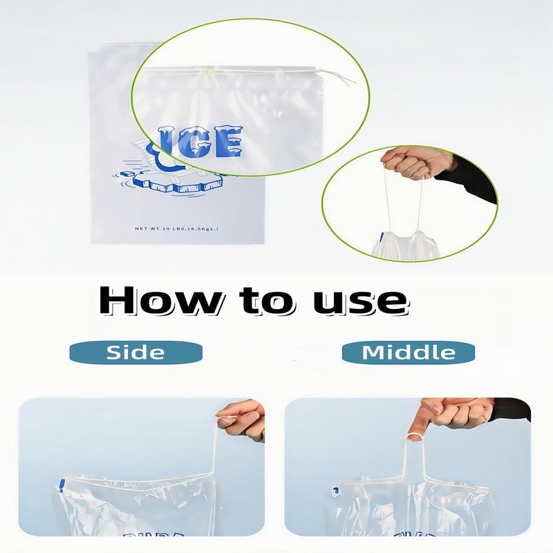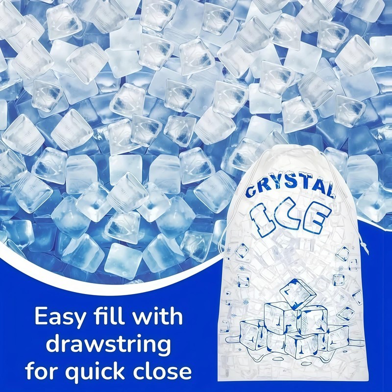 - INNOVATIVE DRAWSTRING:The perfect empty ice bag that enhances storage convenience.A creative opening lift by drawstring of the ice maker bags ensures secure and effortless fastening.Our ice bags for ice machine storage freezer keeper can prevent spills and mess.Recommended for easy and mess-free sealing of each ice bag, be it for parties, picnics, or any event