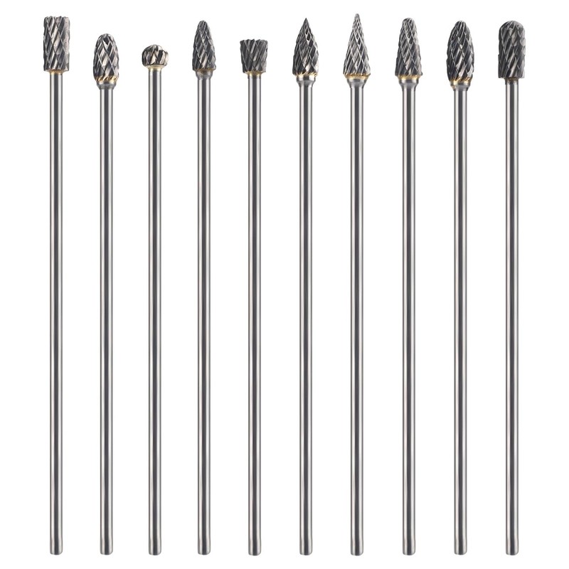10pcs Long Shaft Tungsten Carbide Burrs Kit, 10 Styles Carbide Rotary Grindin...