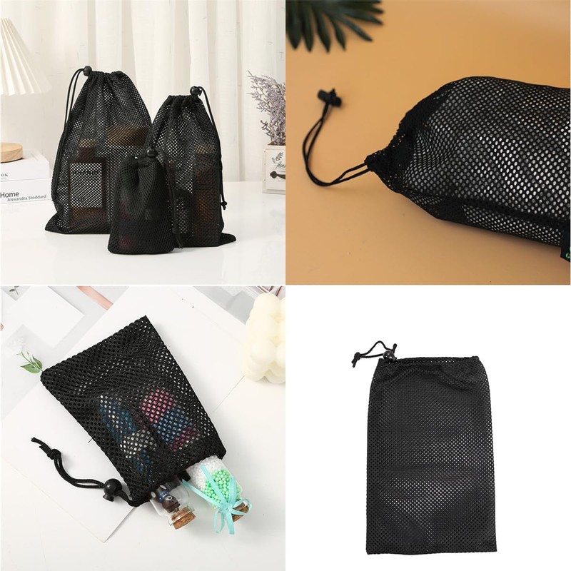 Unique small mesh bags Lightweight, soft, keep your items organized, black plastic clip and sliding pull lock design these pull string bags small easy to use and easy to store! Perfect for storing small things you'll need when traveling or going out!