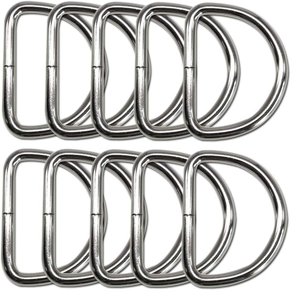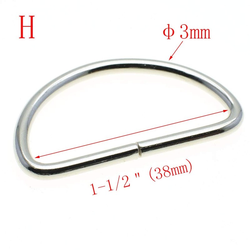 10pcs/Pack 1-1/2 inch Metal D Ring Semi-Circular Non Welded Nickel Plated for Hardware Bags Ring Hand DIY Accessories(Nickel, Webbing Size 38mm)
