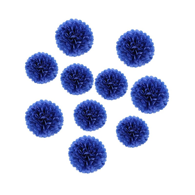 - Paper pom poms Kit, 10PCS Tissue Paper Flowers: ROYAL BLUE color paper pom pom (5PCS 8inch + 5PCS 10inch), Material: paper, ROYAL BLUE paper flower, DIY tissue paper flower, handmade paper flower, hanging paper pom poms