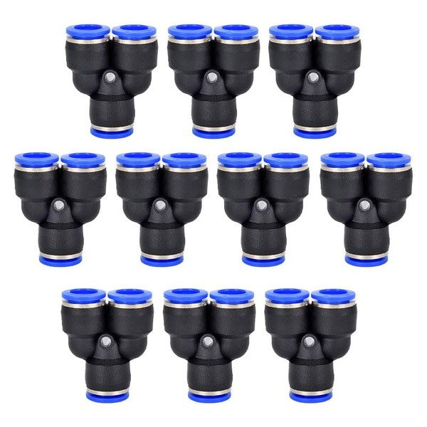 | Universal 10mm tube OD compatibility, push-to-connect design for quick installation, nylon material ensures durability, airtight seal prevents leaks, straight two-way connector maintains consistent airflow, suitable for pneumatic tools and compressors, easy-release mechanism for tube removal, set of 10 connectors for multiple setups. |
