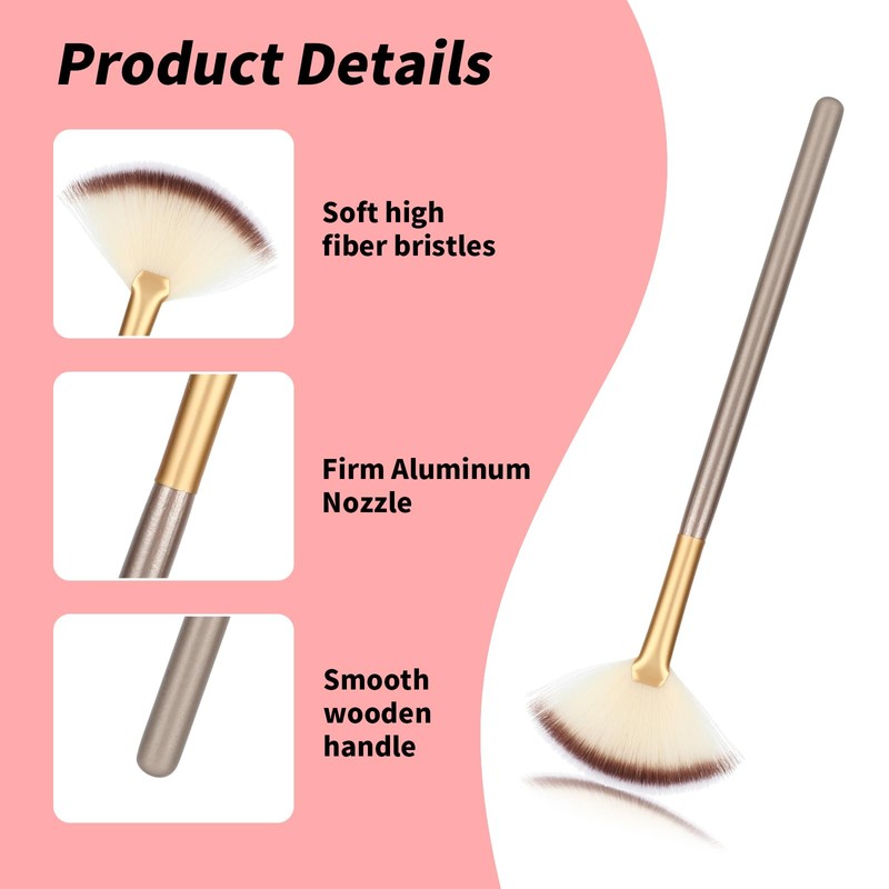 - Professional Makeup Fine Applicator Brushes: Our fan brush bristles are tightly packed for a better grip on powdered products, and the fan-shaped brush head design makes it easy to apply an even and natural finish for a fine makeup effect. No more worrying about over or uneven application of makeup, giving you a professional look