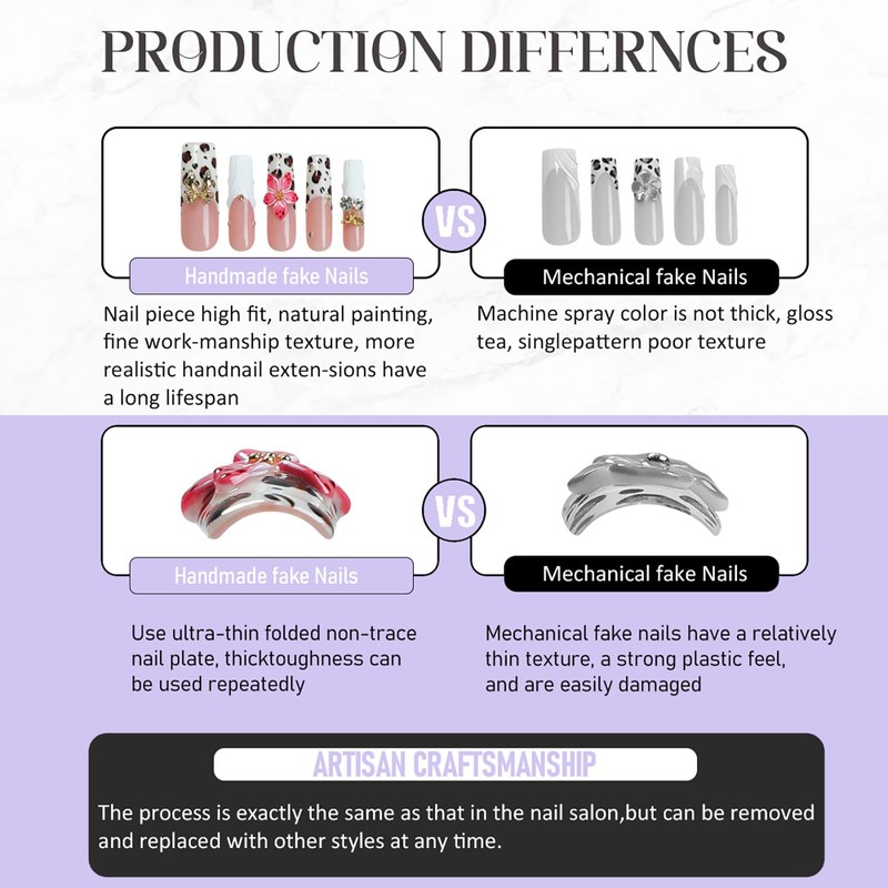 - Versatile Style For Every Occasion: From office meetings to weddings, these handmade press on nails are both convenient, comfortable, and exquisite. Can be easily paired with jewelry or minimalist clothing to create a confident makeup look