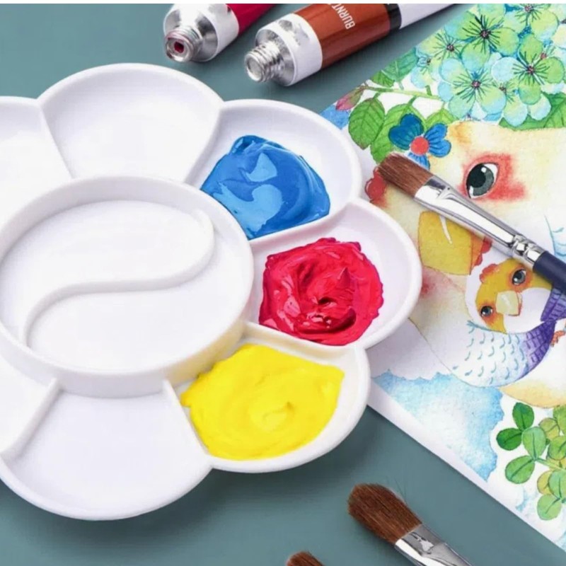 - LARGE CAPACITY: This flower shape palette consists of 8 grooves for paints,not easy to mix colours.It meets the use of many colours of pigment at once, giving convenience to watercolour painting.The grooved part in the middle can be used to mix the pigments into the desired colour.