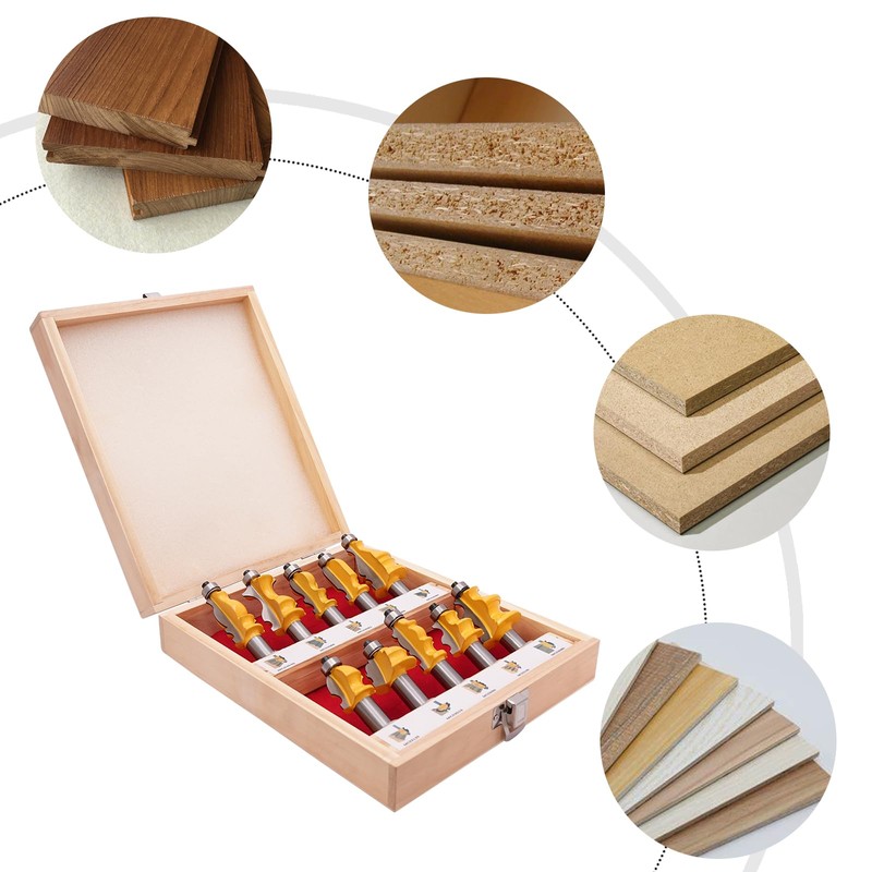 10PCS Router Bit Set ,1/2-Inch Shank Architectural Molding Corner with Wooden Storage Case Round Edge Door Cabinet Shelf Wood Table Woodworking Mill Cutter Tool