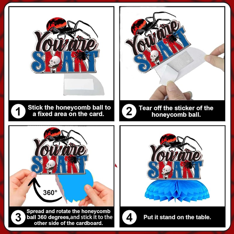 - No Assembled Required ! : Just tear off the sticker of the honeycomb, stick the honeycomb ball to the bottom of the card and fix it. Finally, gently unfold the honeycomb ball by hand, add Halloween spider theme atmosphere to your party and bring a visual feast to your guests