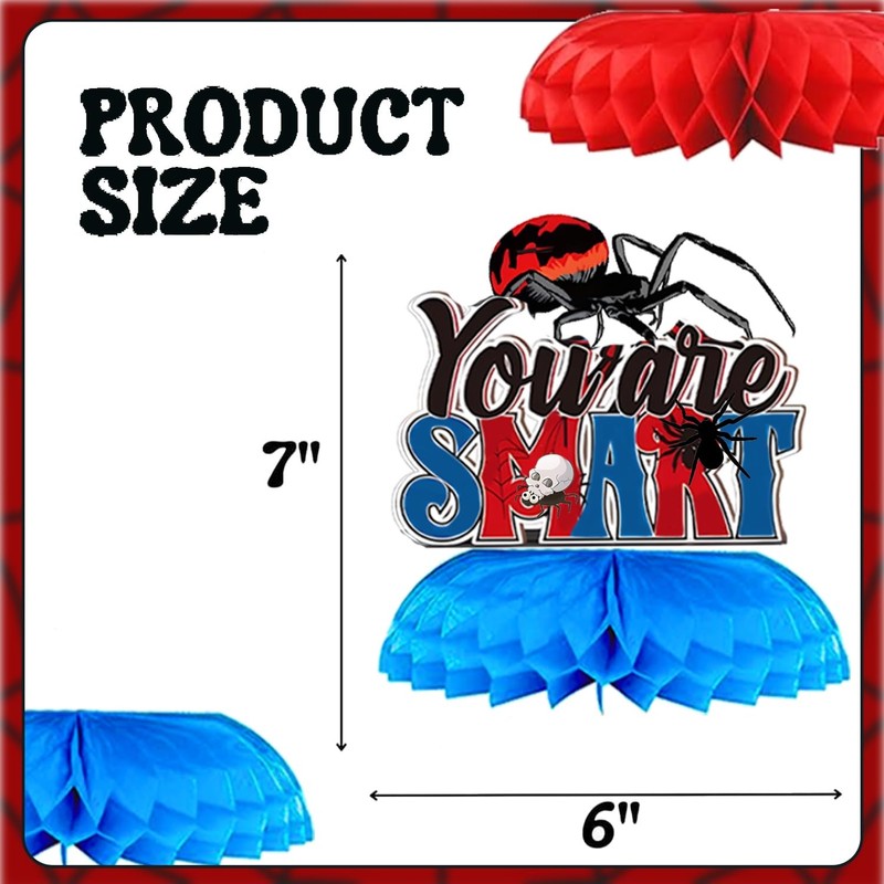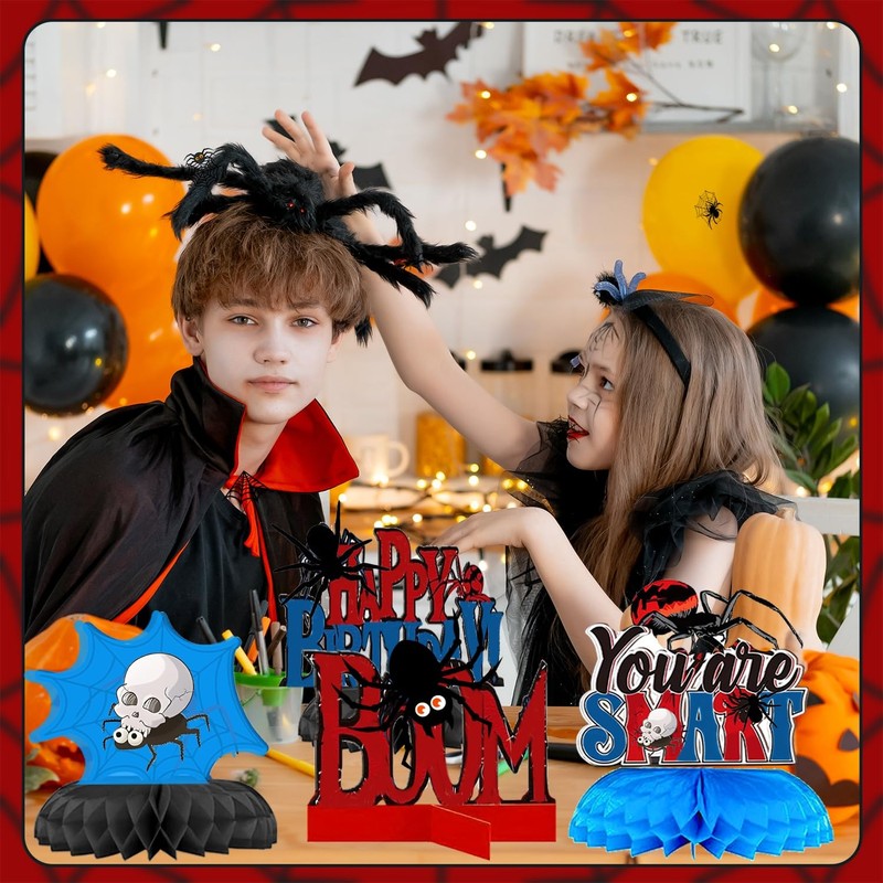 - Spider Web Birthday Party Decorations: You will get 10 pieces spider table centerpiece decorations with spider print design paired with a bright colors of red, black, white and blue, it will bring a joyful atmosphere to your party