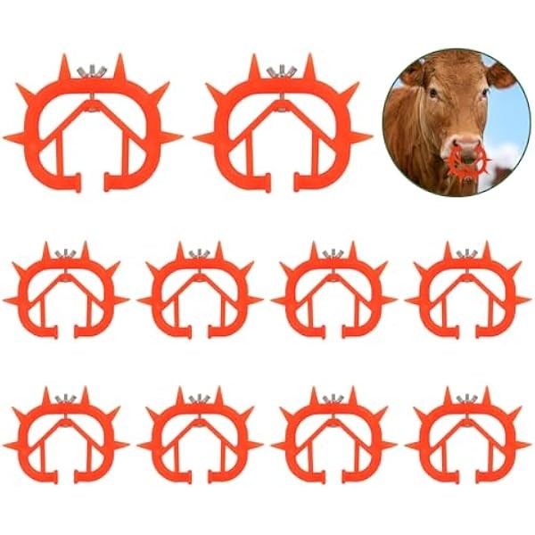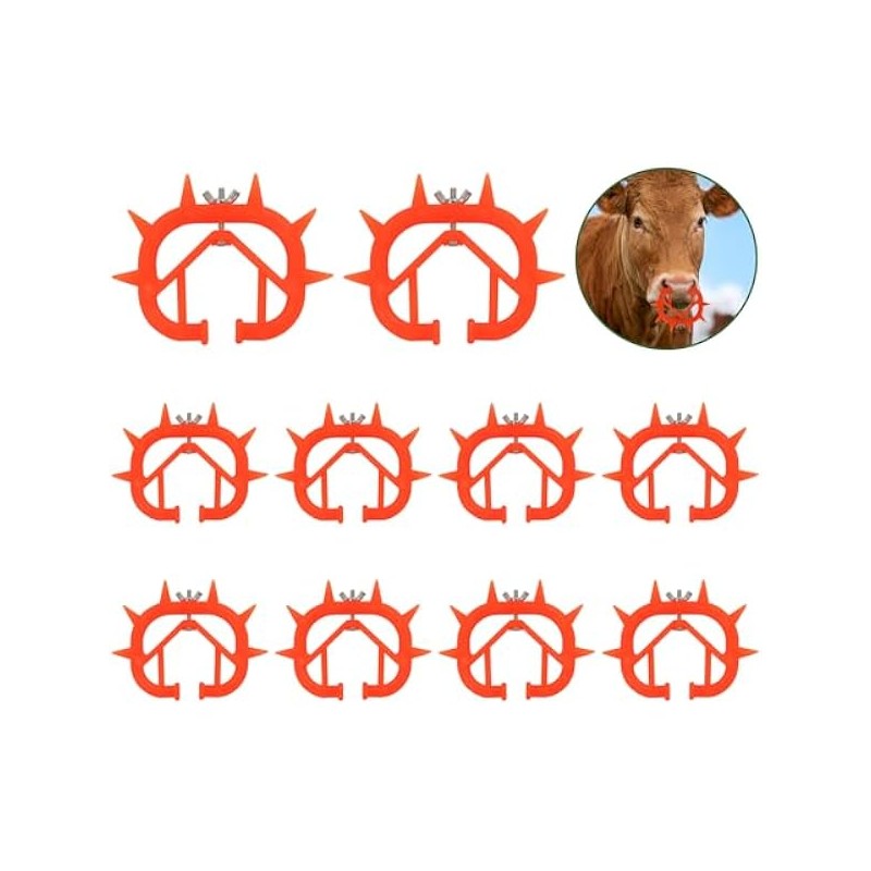 10PCS Thickened Plastic Calf Weaning Rings, Orange Cow Nose Rings Calf Weaning Device Tool for Prevent Calf Cattle Sucking Cattle Supplies