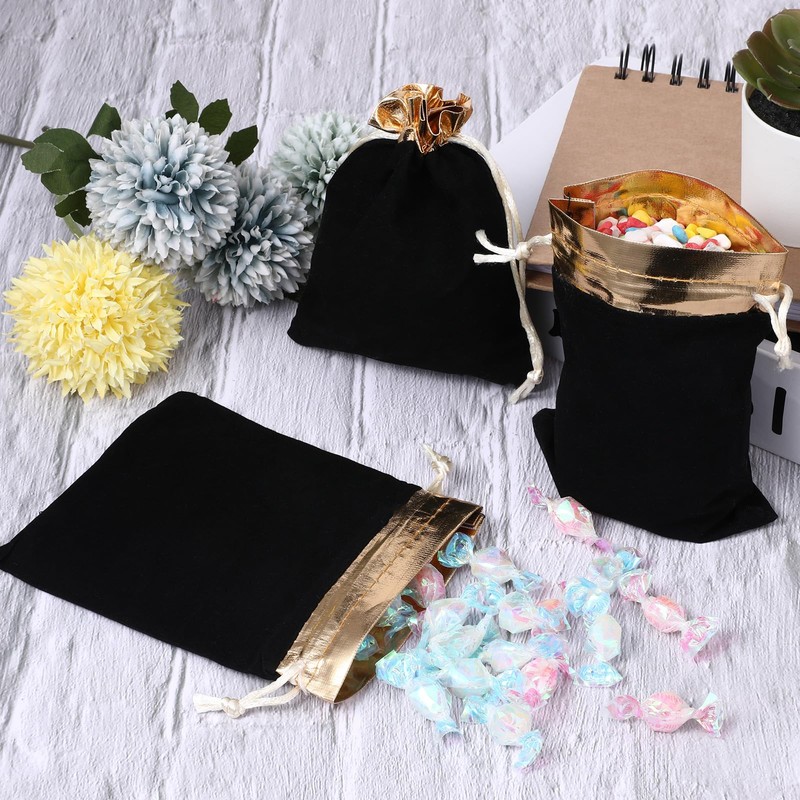 10Pcs Velvet Bags with Drawstrings, Black Gold Cloth Gift Pouches 6.3x4.7 Inch Small Cloth Bags with Drawstrings for Jewelry Candy Christmas Party Favors