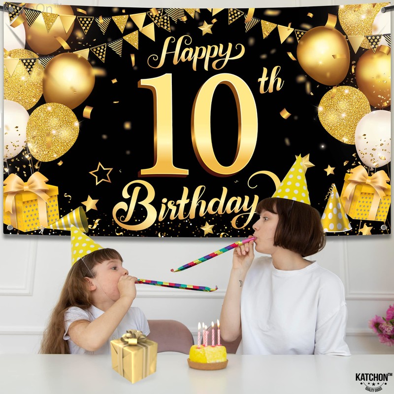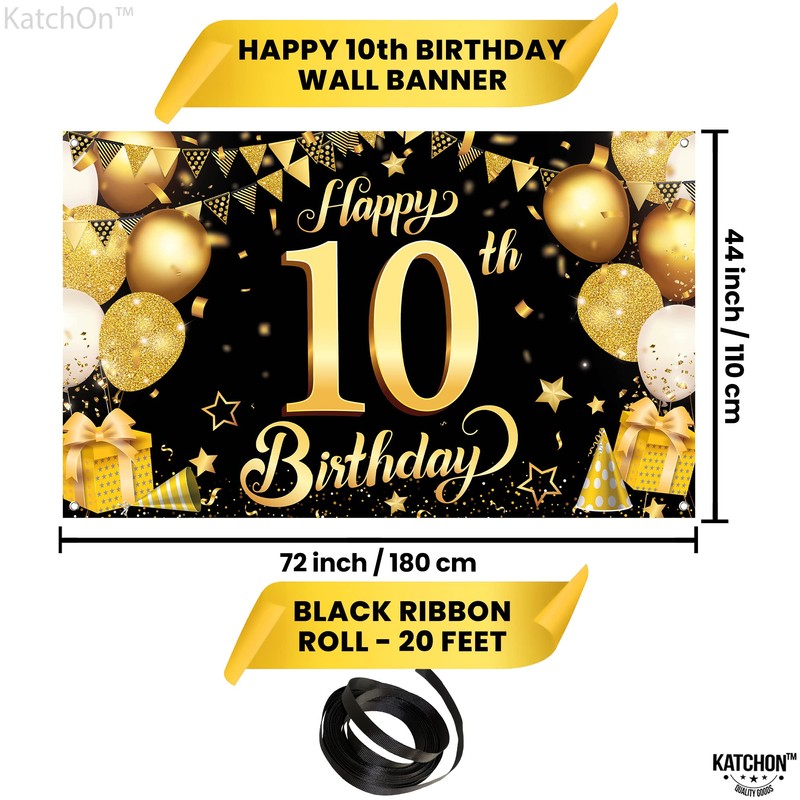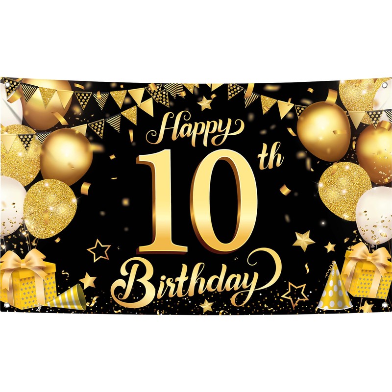 - 10th Happy Birthday Black Wall Banner,Foil