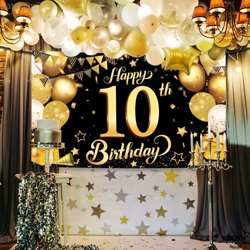 10th Happy Birthday Black Wall Banner,Foil