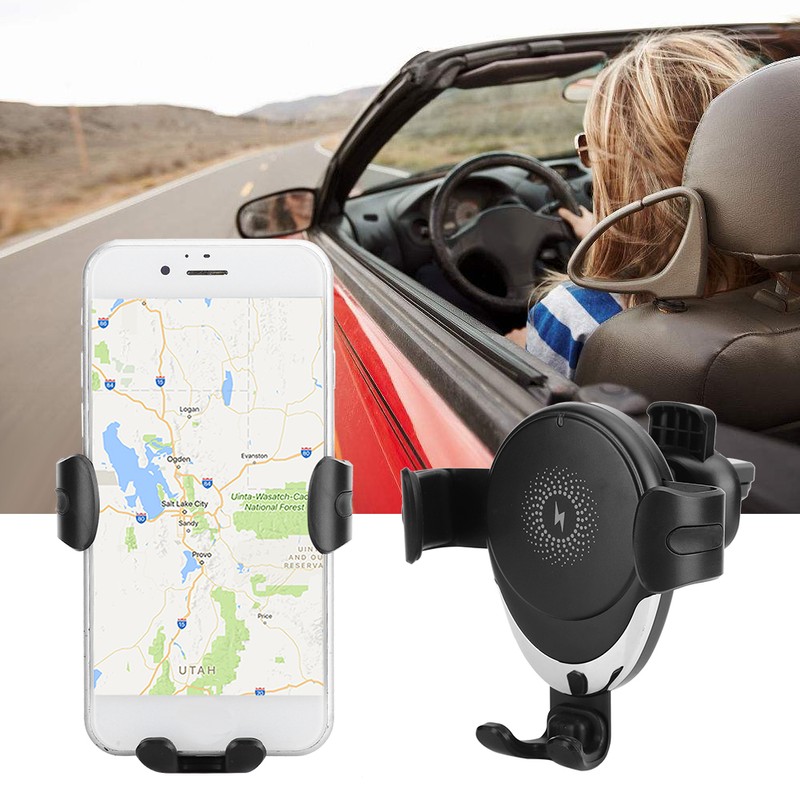 10W Large Power Quick Charging Air Outlet Gravity 360 Degrees Rotation High Efficiency Car Bracket Wireless ChargerBlack