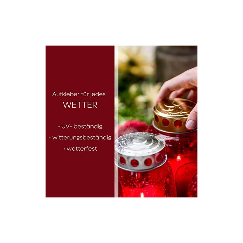 Personalisiert eure Grabkerzen mit den Aufklebern und stellt diese auf das Friedhofsgrab.
