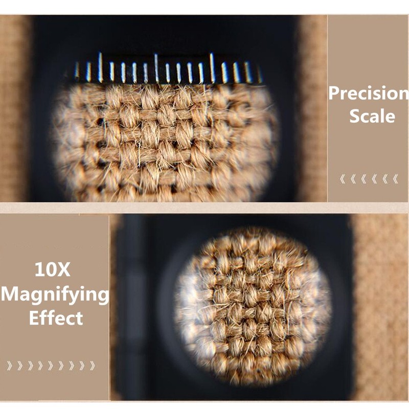 - Folding Magnifying Thread Counter Linen Tester ◆ Folding and standing design, 10X Lens compact folding magnifier with fixed scales; Suitable for your textiles class, counting threads, stitches or measuring small parts; Could also be used as linen tester
