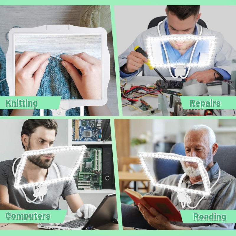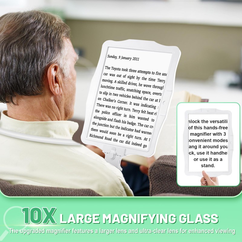 - 3-in-1 Flexible Design – Neck Hanging, Handheld, and Stand Modes:This magnifying glass offers three flexible modes: neck-hanging, handheld, and stand, allowing you to use it hands-free or hold it as needed. Ideal for crafting or reading, it adapts to your needs. Hands-free magnifier with light is perfect for long projects like knitting or embroidery.
