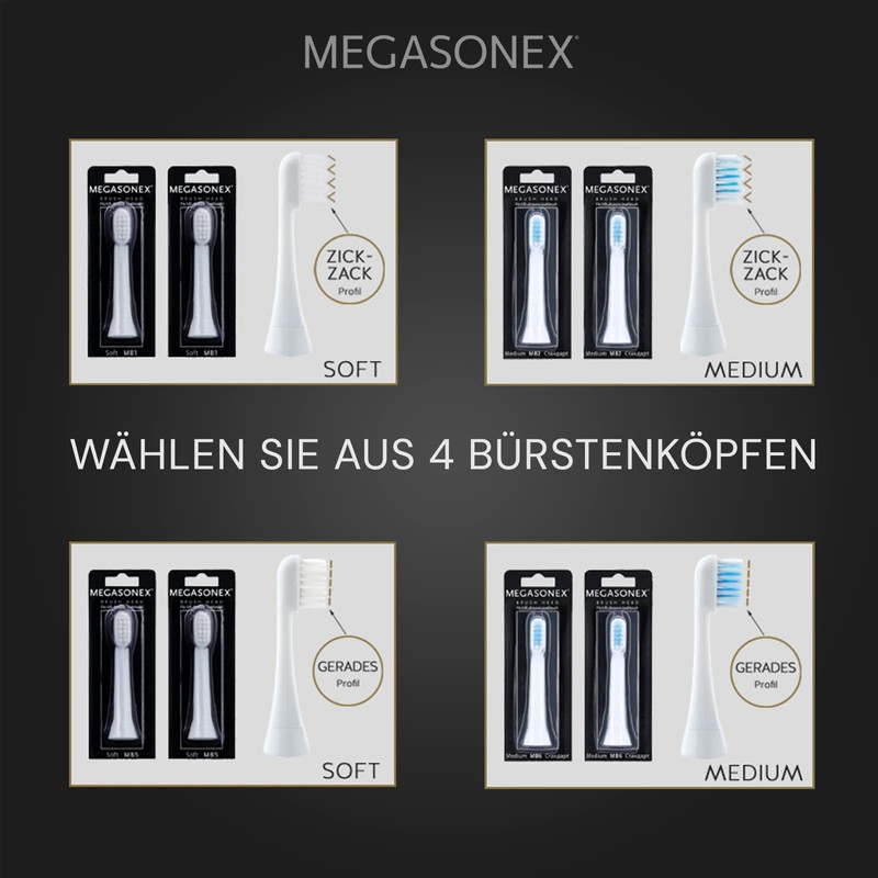 - The Megasonex brush heads have ultra-fine Dupont Tynex fibres