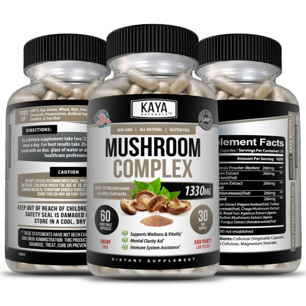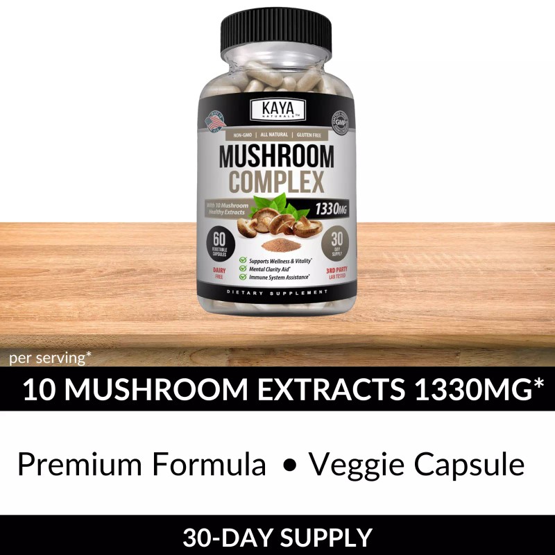10x Mushroom Complex Supplement, Lions Mane, Reishi, Shiitake, Immune Capsule