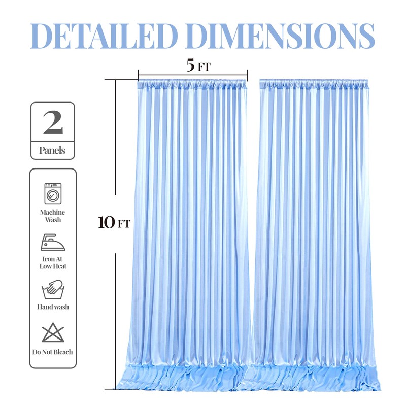 - 【Easy Use & Care】Baby Blue backdrop drapes features a convenient 4-inch circumference rod pocket at the top, allows for easy draping or straight hanging, saving your time and effort during setup.Wedding backdrop curtains are easy to care for, machine washable with a delicate cycle and mild detergent.Tumble dry on low heat and avoid bleaching to maintain their quality.