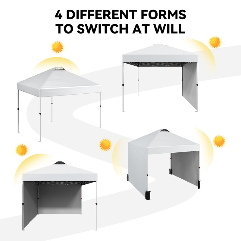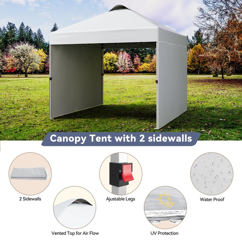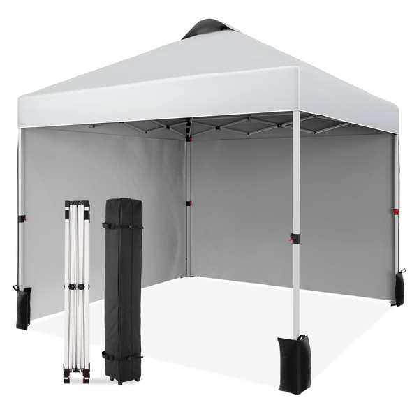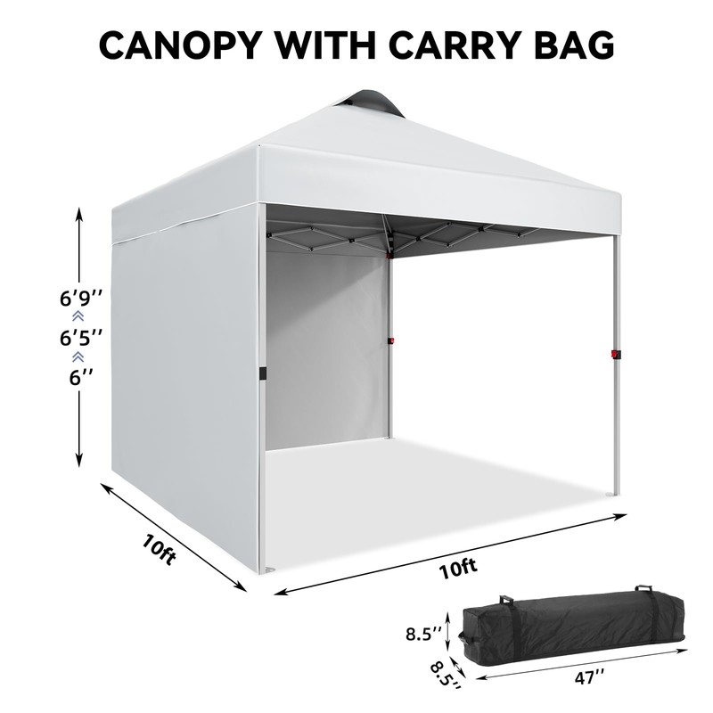10x10 Pop Up Canopy Tent with Two Side Walls, Commercial Instant Canopies Shelter, Includes Wheeled Carry Bag & 4 Sandbags,Portable Outdoor Sun Shade for Camping, Beach, Parties, Events,White