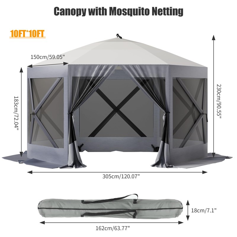 10X10 Pop-Up Gazebo Screen Tent – 6-Sided Instant Canopy Sun Shelter with Durable 600D Oxford Fabric and Portable Carry Bag – Ideal for Camping, Lawn, and Backyard