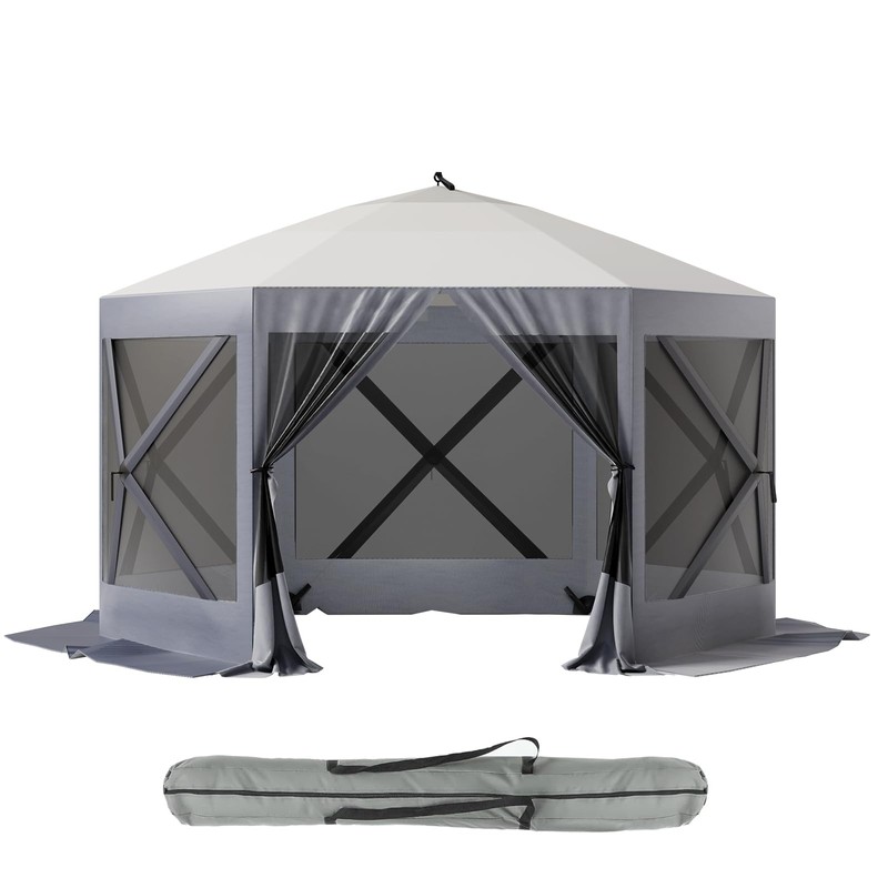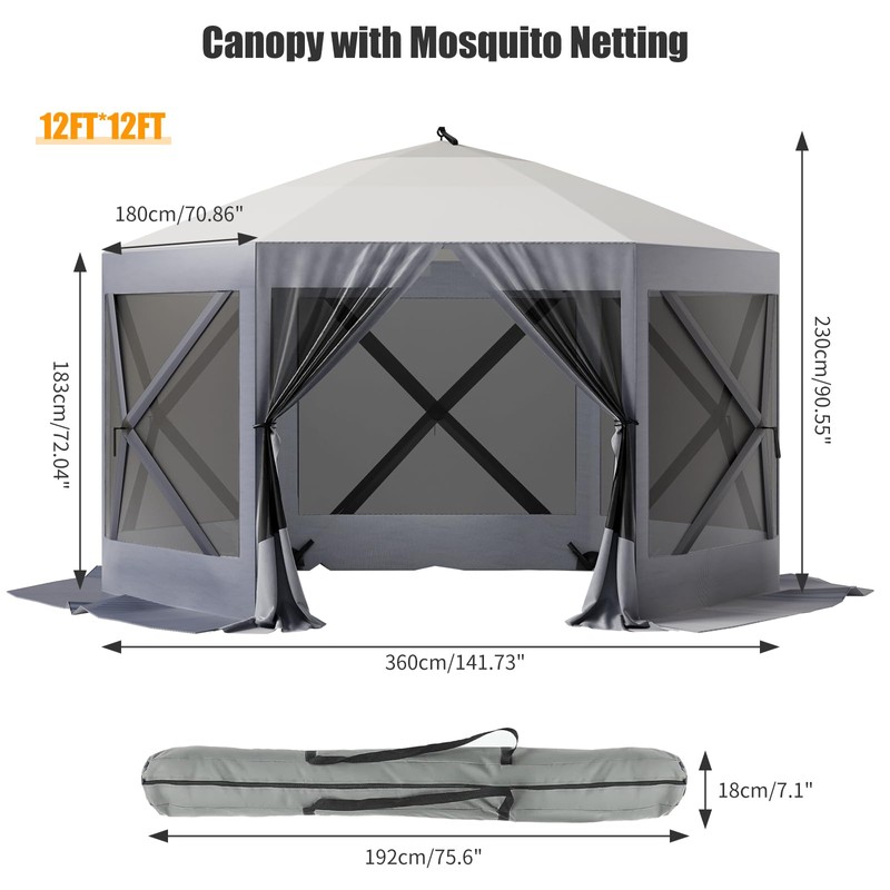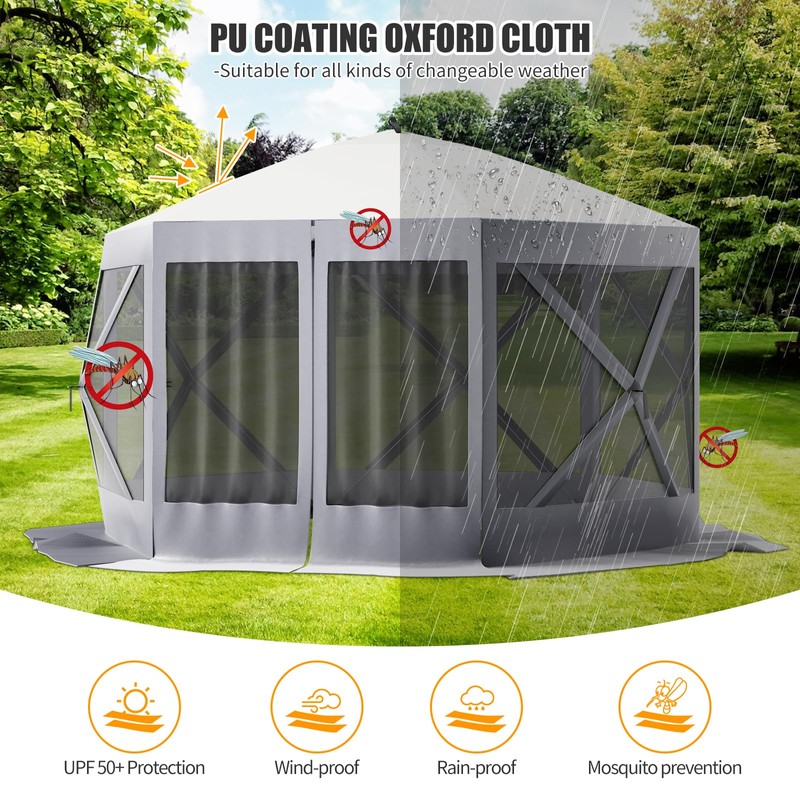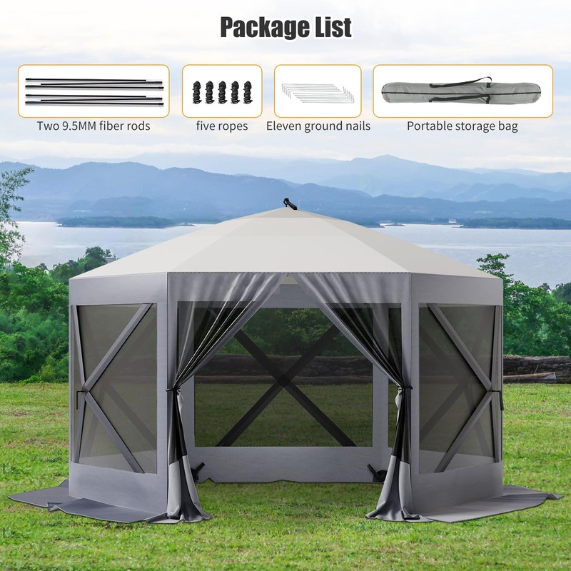 - [Quick and Tool-Free Setup]:This hexagonal gazebo tent is engineered for rapid installation with no tools required. Set it up in just minutes to enhance your outdoor experience, making it ideal for camping trips, picnics, and family gatherings.