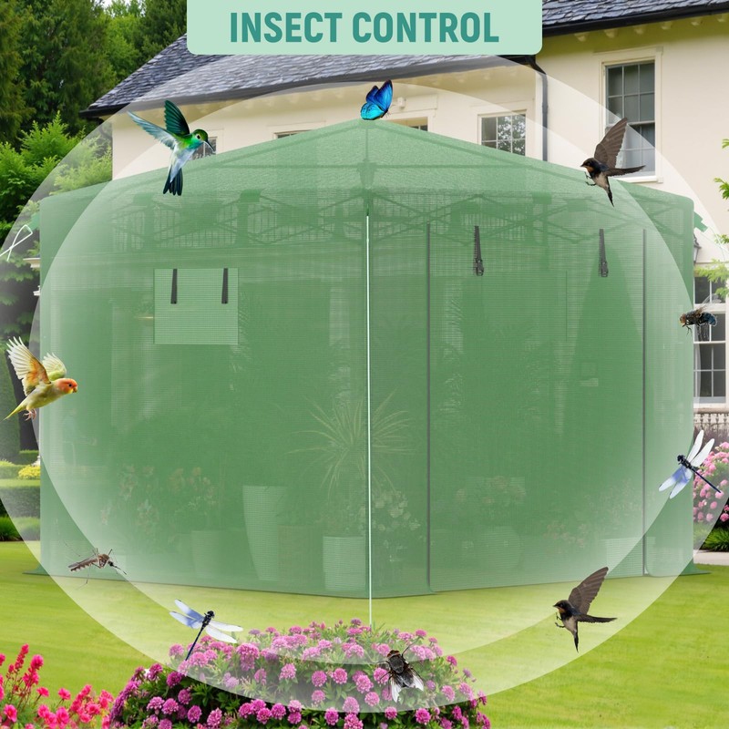 - 【Roller Shutter Entrance & Windows】Zipper roller shutter doors can be fully opened for easy access; The rolled up side window with a screen provides good ventilation and makes it easier to block birds and observe plants.