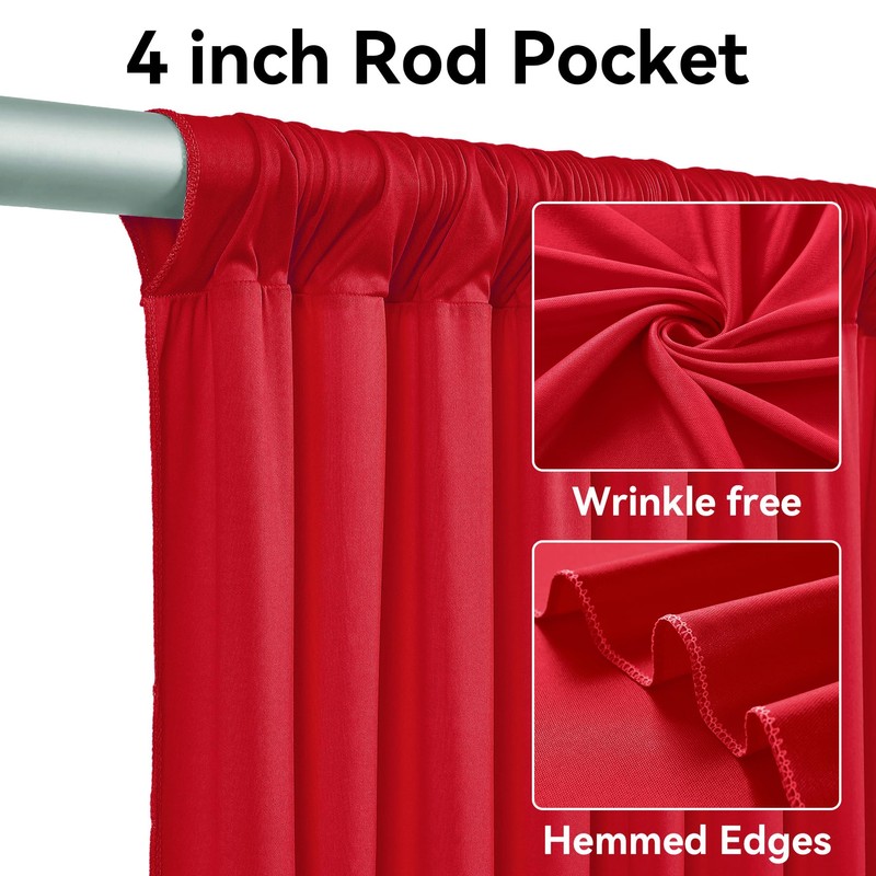 - 12FT Extra Long Backdrop Drapes: 2 Panels 5ftx12ft Red Backdrop Curtains for Parties. Totally 10FT(Width) x 12FT(Height). cortinas para fiestas decoracion.