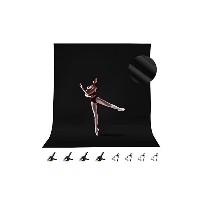 - 【PACKAGE INCLUDE】: just 1 pc 10x12ft black backdrop, 4 spring clips and 4 Backdrop elastic string clip in package; Due to cutting and edge stitching, there may be a slight deviation in the width of the background (within 1-6cm); stand or cross bar NOT included.