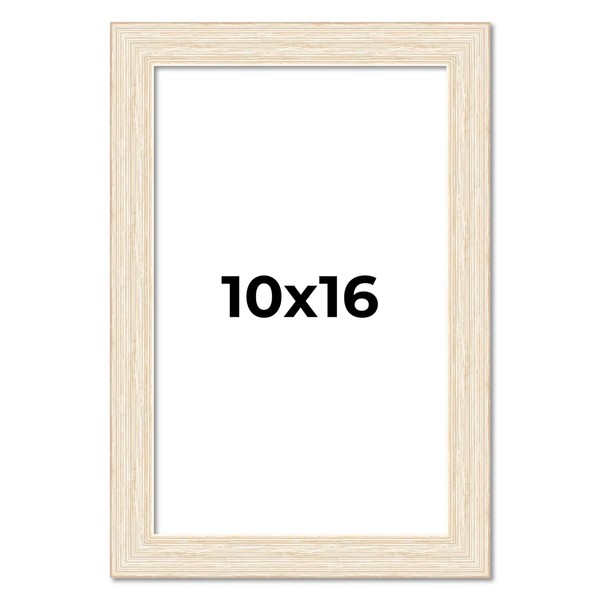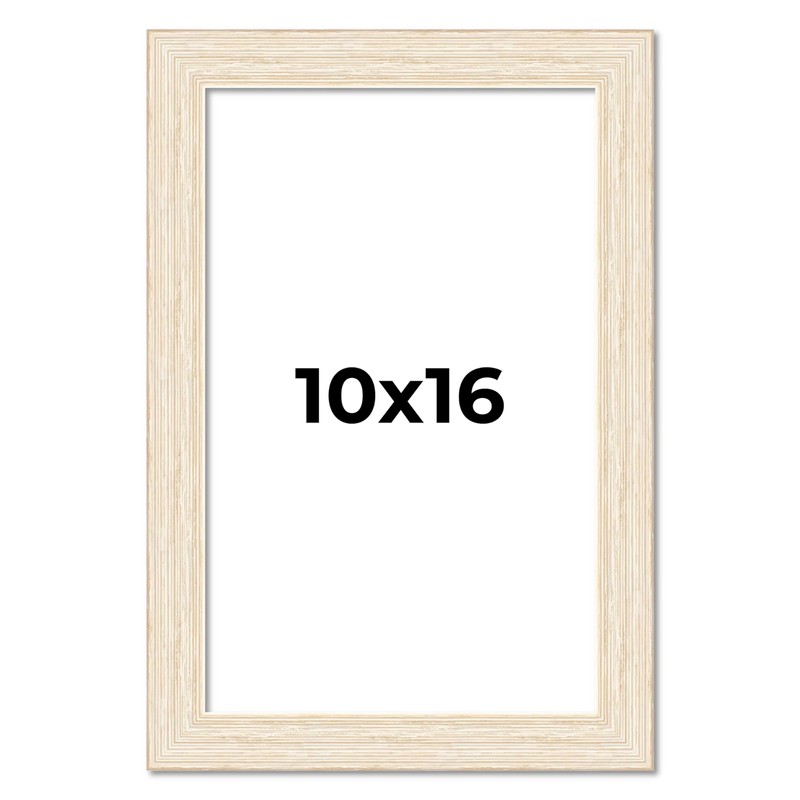 10x16 Distressed/Aged White Washed Wood Picture Frame - UV Acrylic, Foam Board Backing, & Hanging Hardware Included!. This Wood Picture Frame has been built for images measuring 10x16 Inches.. Overall dimensions 11.5x17.5 Inches.. Moulding Width: 1.5 Inches - Rabbet Depth: 1/2 Inches. UV Resistant Frame Grade Acrylic Sheet & Foam Board Backing Included.. Hanging hardware is included but not installed—easily attach for vertical or horizontal display!