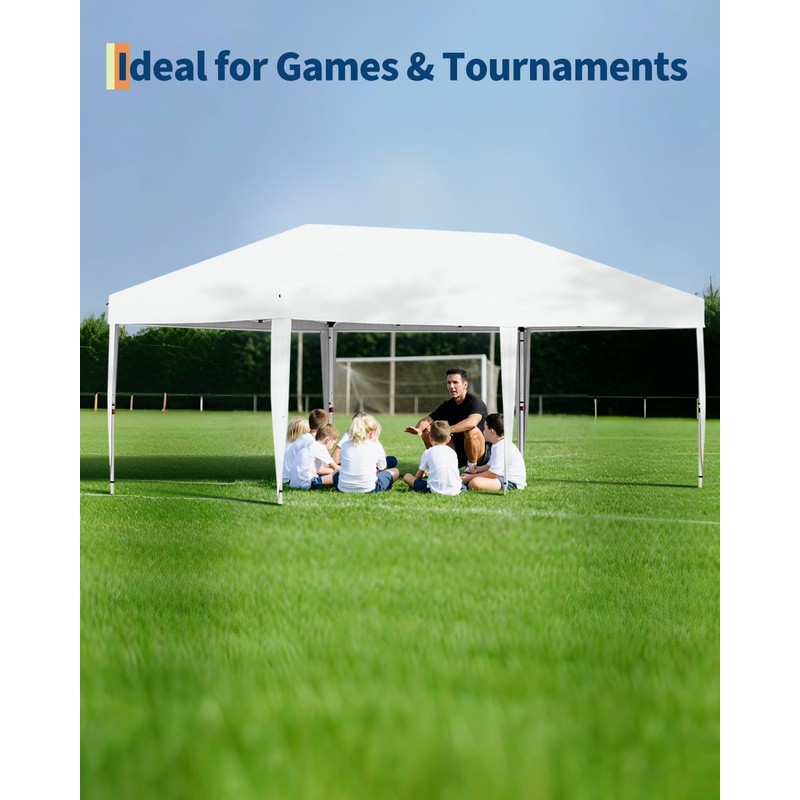 10x20 Pop Up Canopy with 6 Sidewalls - Heavy Duty Outdoor Canopy Tent with Portable Roller Bag - 3 Adjustable Height, 4 Weight Bags, 8 Stakes & 6 Guy Ropes Included, White