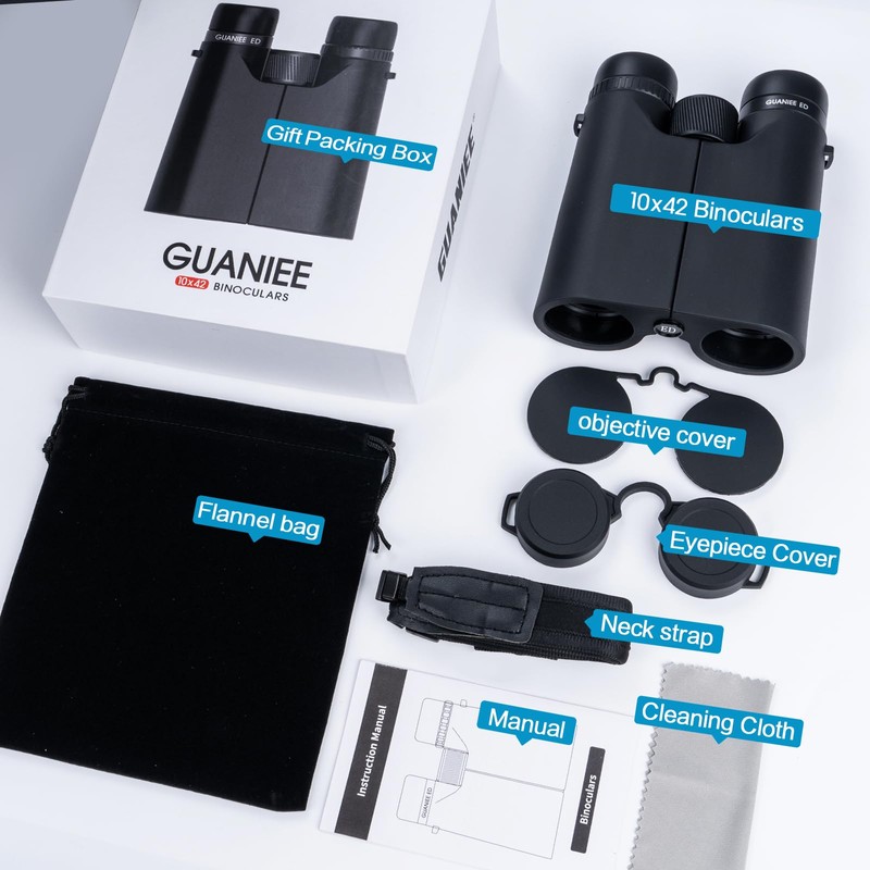 - 【10x Magnification Binoculars】Experience nature's wonders in stunning detail with our 10x high-power binoculars for adults, featuring a generous 42mm objective lens for a wide field of view. Crafted with multi-coated optical lenses and premium Bak4 roof prisms, these binoculars deliver crisp, vibrant images with precise color accuracy, immersing you in a world of unparalleled clarity and detail. Ideal for outdoor adventures