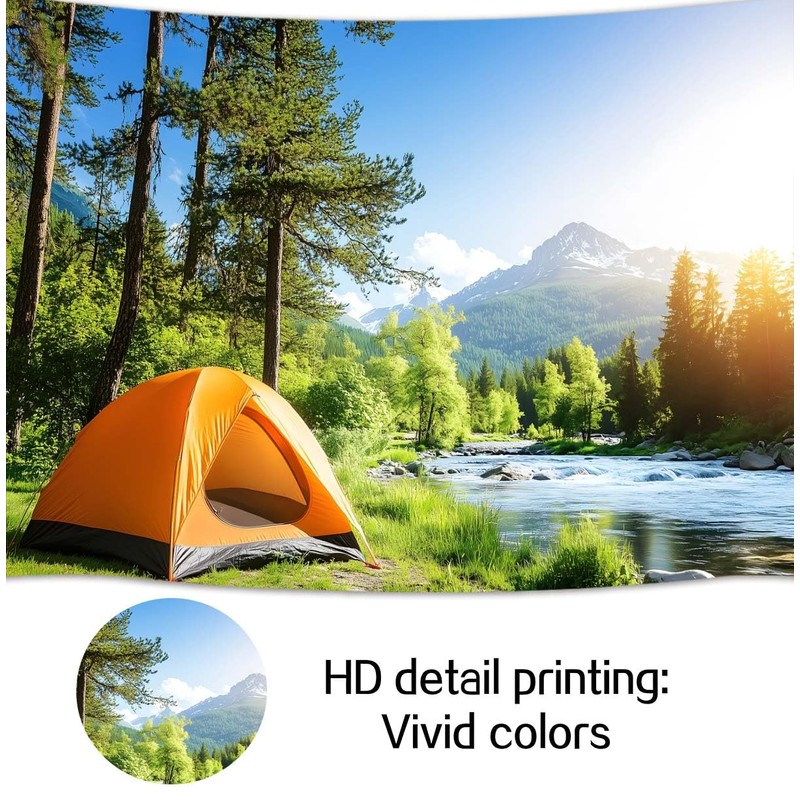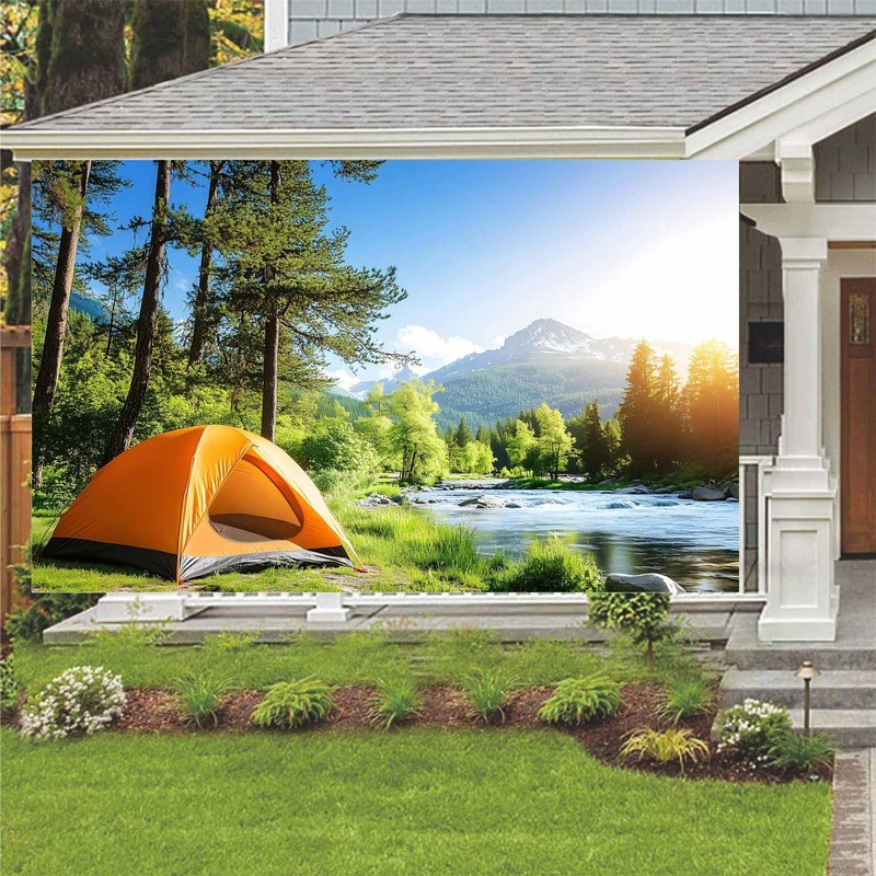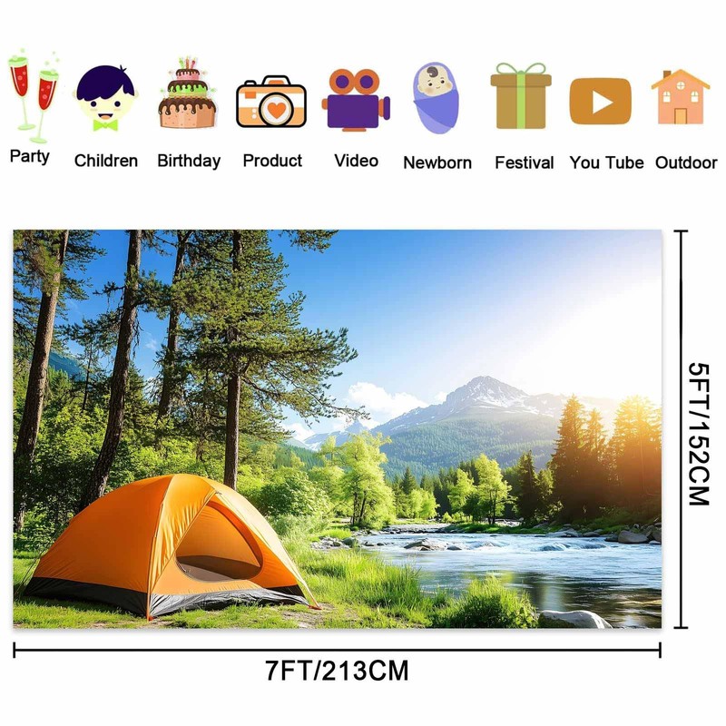 10x8ft Camping Backdrop, Outdoor Camping Tent Green Forest Pine Trees Lake Scenery Background, Spring Summer Camp Picnic Camper Party Decorations Photo Booth Studio Props