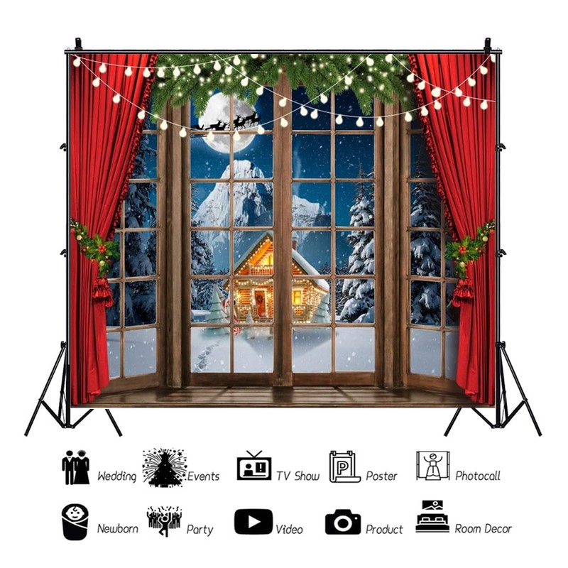 1x vinyl Christmas window Photography Backdrop(Folding);