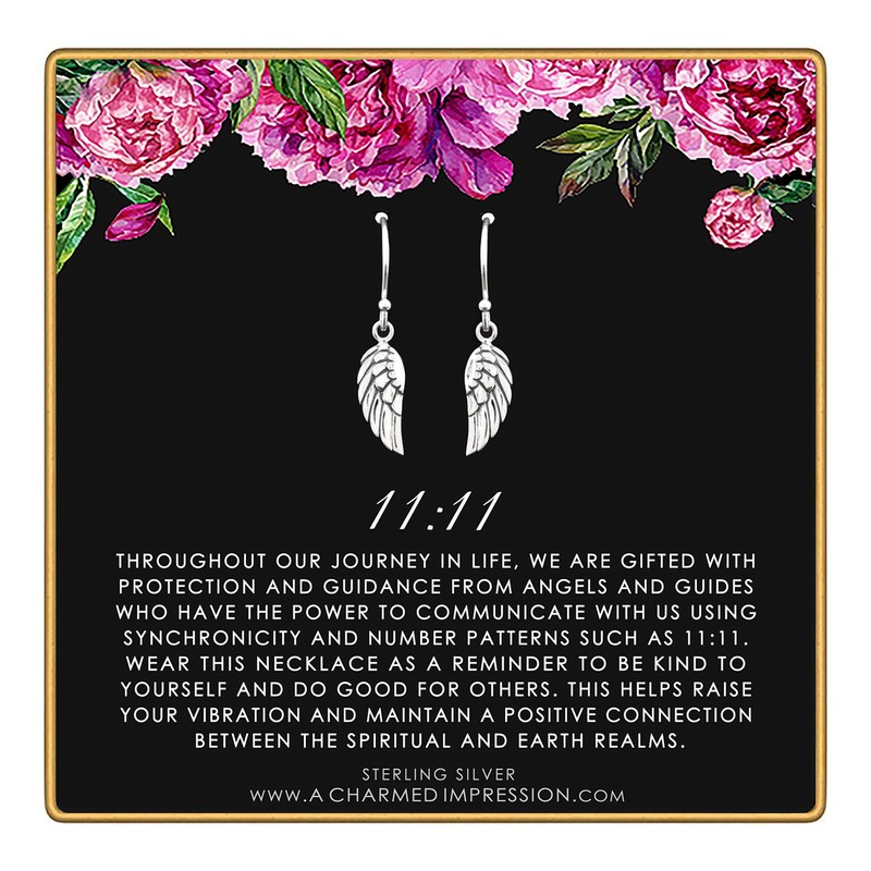 11 11 Silver Earrings • Lightworker Jewelry Gifts • Make a Wish • Angel Wing Charm • 1111 Earrings • Guardian Angel • Spiritual Growth Encouragement Gifts for Women • Ascension Jewelry Gift