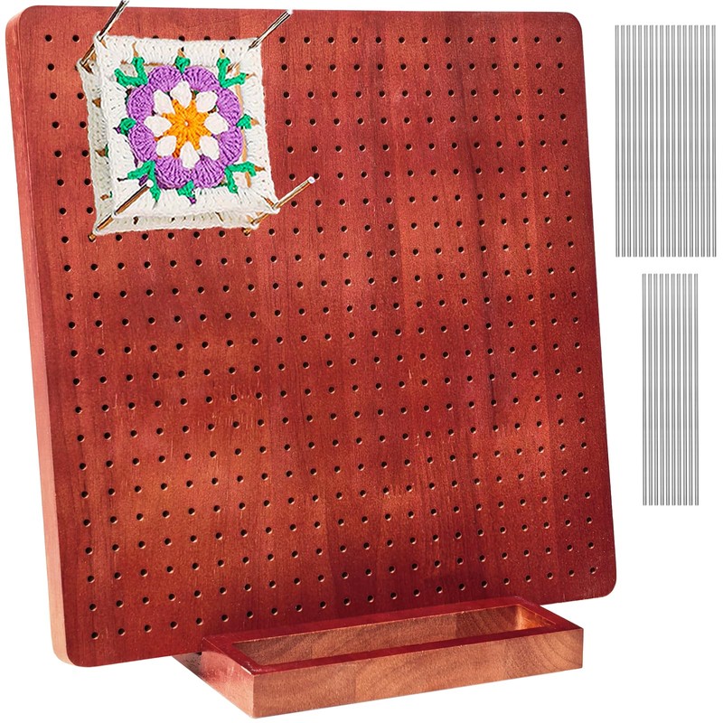 11.8" Crochet Blocking Board with Stainless Steel 20 Pegs - Wooden Granny Square Blocking Board for Crochet Projects, Crocheting Accessories, Crochet Gifts for Crocheters (Red)