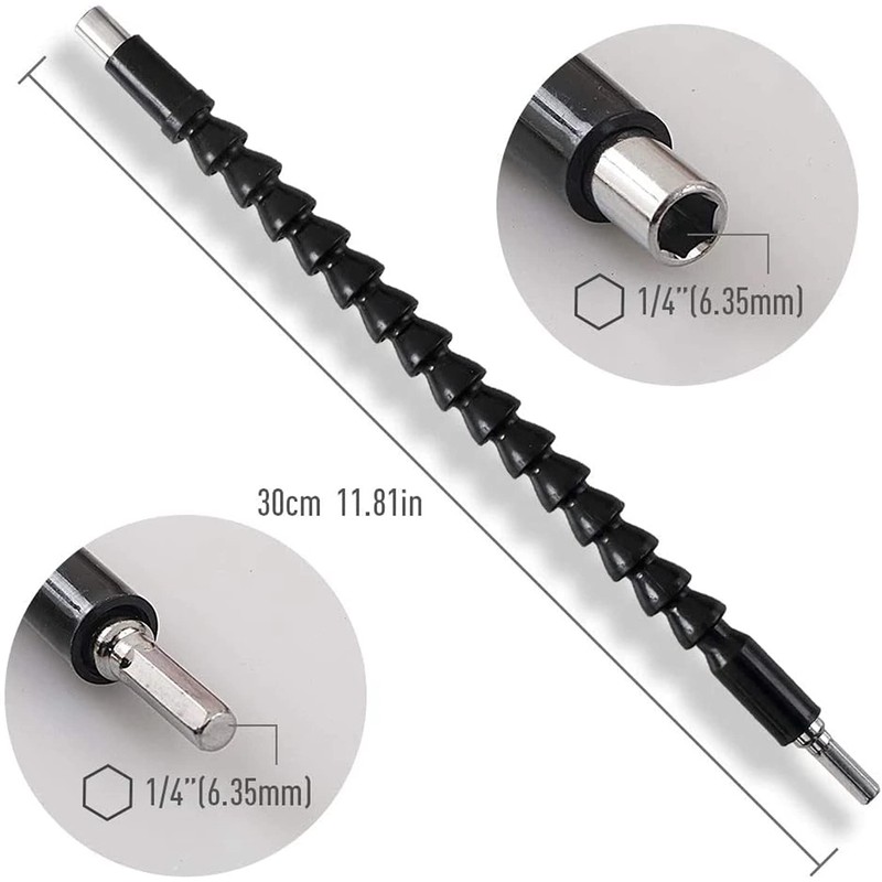 • 28cm Flexible Drill Bit Extension material:carbon steel and plastic, this extension bit is durable and reliable.