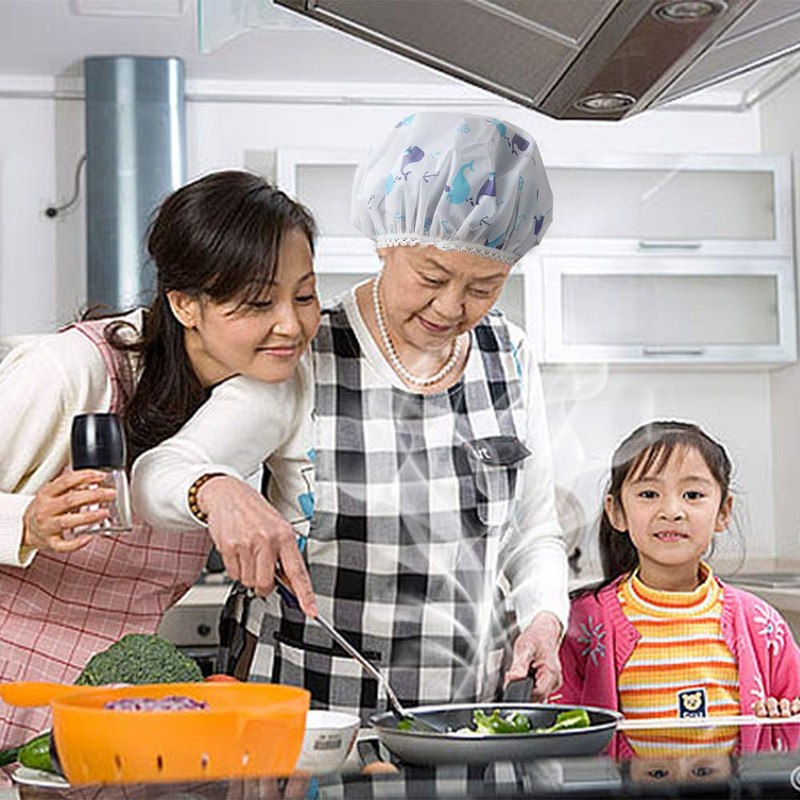 - Amplias aplicaciones: estos gorros de ducha impermeables son adecuados para ducharse, cocinar, lavarse la cara, maquillarse, SPA, proteger bien tu cabello.