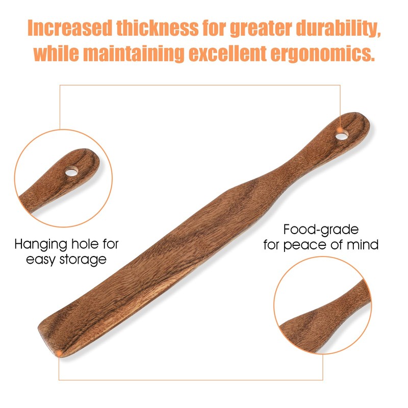 - Material is Healthy and Safe: Crafted from high-quality, food-grade wood, our spurtle spatula is a testament to health and safety. Its smooth, curved edges are gentle on your delicate kitchenware, ensuring no scratches or damage. Perfect for those who prioritize a healthy cooking environment, this wooden spatula is a blend of durability and eco-friendliness.