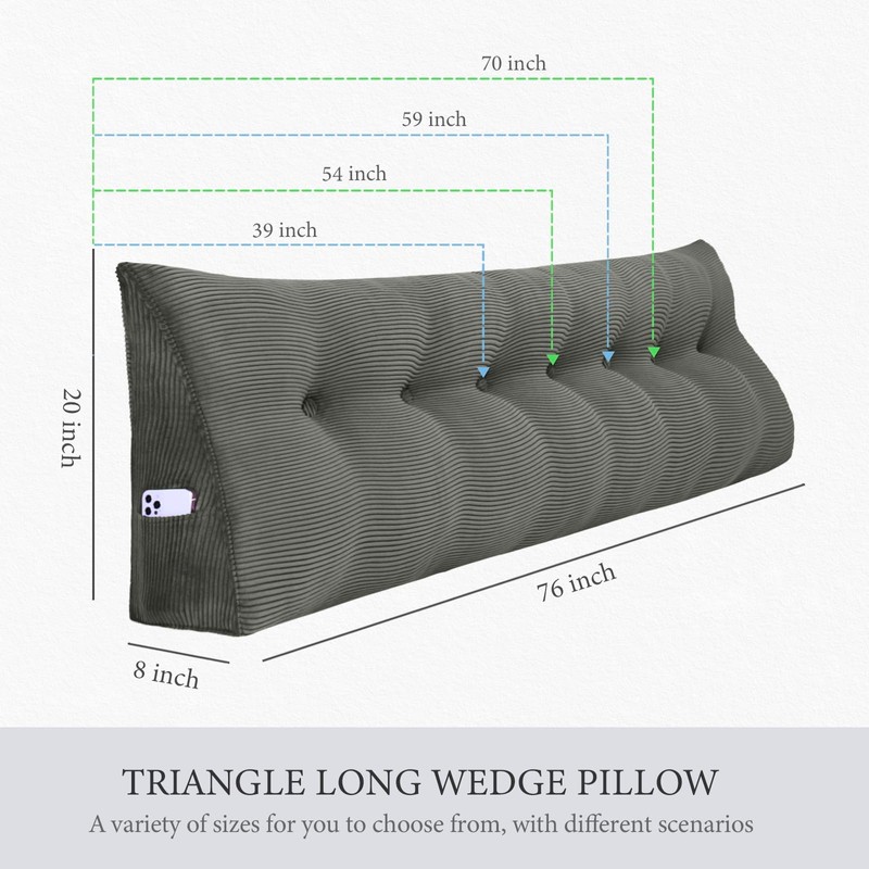 • SIDE POCKETS: The headboard wedge pillows feature convenient side pockets, providing ample space to store essentials such as your phone, glasses, remote control, and other small items
