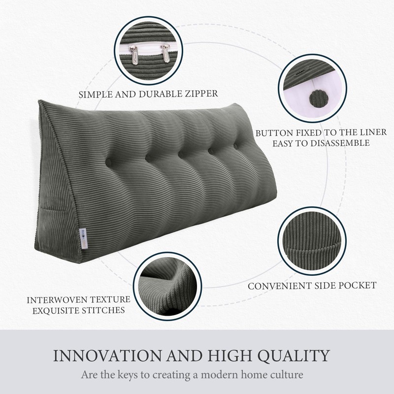 11 lbs Thickened Queen Wedge Pillow Headboard Body Positioner Triangular Reading Pillow Bed Bolster Pillow for Sitting in Bedwith Removable Cover Gift for Dad Backrest Cordury Gray