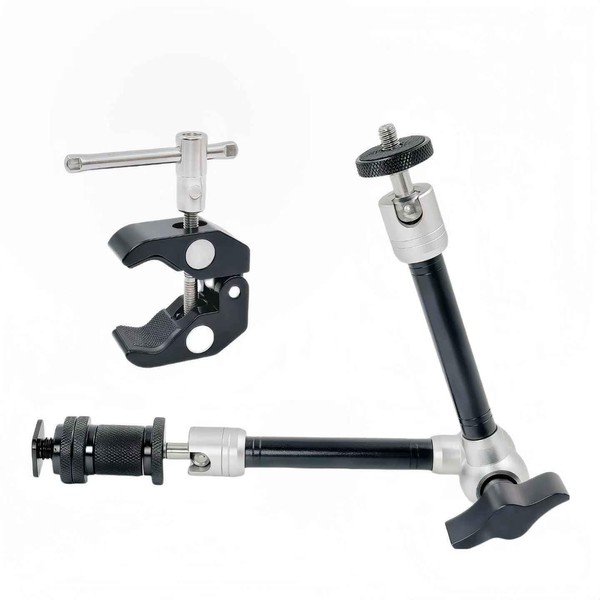 - Versatile Mounting Arm with Clamp: This 11" articulating magic arm features dual ball heads and a strong friction joint, compatible with monitors, DSLR/mirrorless cameras, LED lights, microphones, and action cameras like GoPro Hero 12–7, Insta360, DJI Osmo Action, and more.