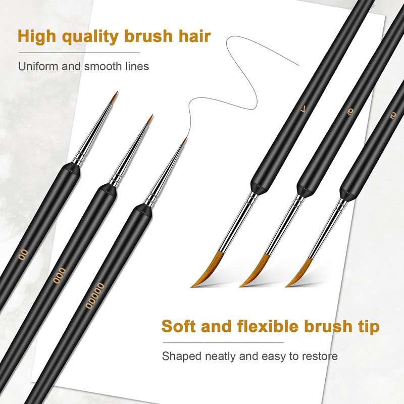 - Detailing Brushes Set: There are 11 pcs thin paint brushes in 11 different size for various needs:00000,000,00,0,1,2,3,4,5,6,7. You can choose the proper size during your painting process.