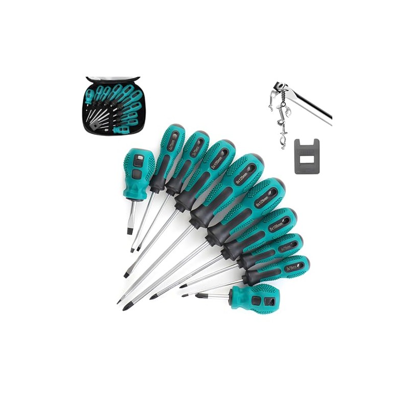 - 【Magnetic Screwdriver Set】Our magnetic screwdriver set features optimized magnetism at the head of each screwdriver. This not only ensures the screwdriver bits maintain magnetization over an extended period but also heightens the ease and enjoyment during use.