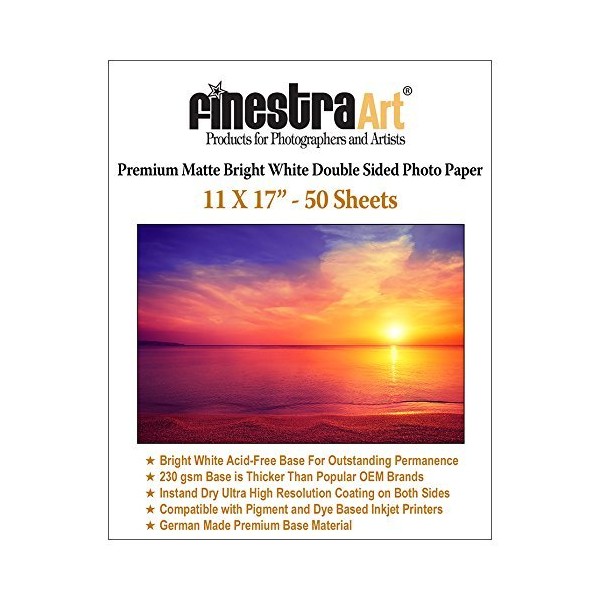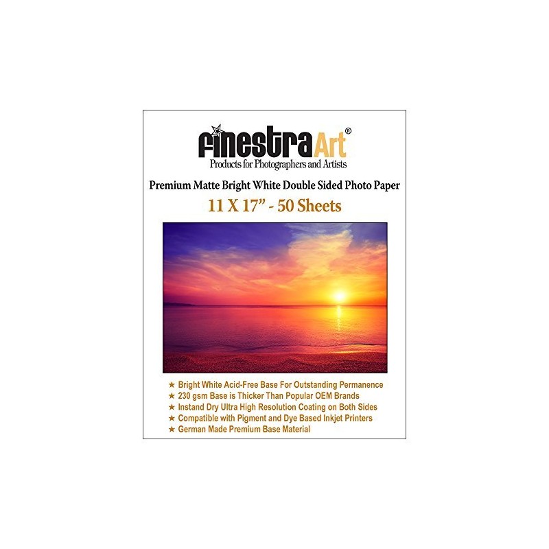 11" X 17" Premium Matte Bright White Inkjet Double Sided Photo Paper - 50 Sheets
